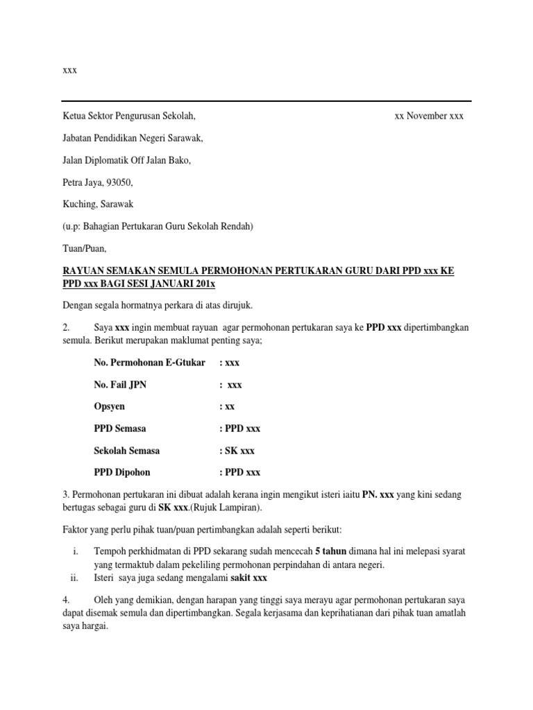 Contoh Surat Rayuan Pertukaran Guru Egtukar Pdf