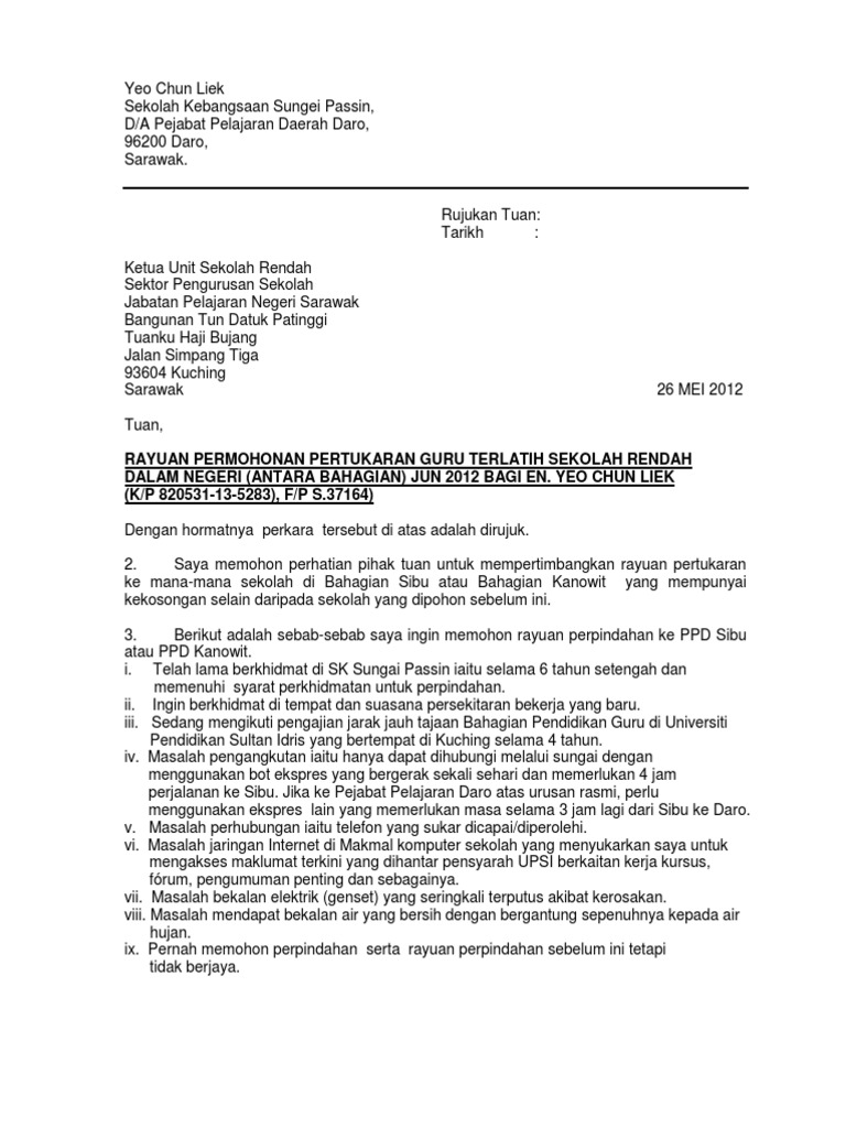 Cikgu boleh download melalui link ini. Pindah contoh surat pertukaran sekolah anak. Permohonan urusan pertukaran guru permohonan khas bagi tahun.